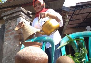 Dari sisi tong ini ada sendok kayu dengan batok kelapa dan dua gelas minum. Siapa-siapa saja dapat minum air keran. Juga waktu air di tong habis, satu diantara bagian keluarga lekas mengisinya kembali. Laras akan selalu ada di luar rumah waktu 24 jam mulai sejak keberangkatan masyarakat sampai menetapi beribadah haji. Tong itu bakal dibawa kembali seusai masyarakat kembali lagi ke tanah air. Nah, saat jemaat pulang dari Tanah Suci, umumnya ada rutinitas yang berlainan. Rutinitas yakni keluarkan tong. Gentongan sendiri mempunyai pengertian filosofis buat penduduk. Dia menuturkan kalau calon peziarah yang bakal siapkan air ini bakal terlindungi dari matahari waktu ada di Tanah Suci.